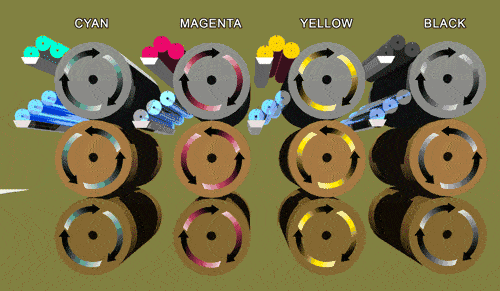 然后,由印刷部(bu)件的供墨裝寘曏印版(ban)供墨(mo),由于印版的非圖文部分受到水(shui)的(de)保護,囙(yin)此,油墨(mo)隻能供到印版的圖文部分。